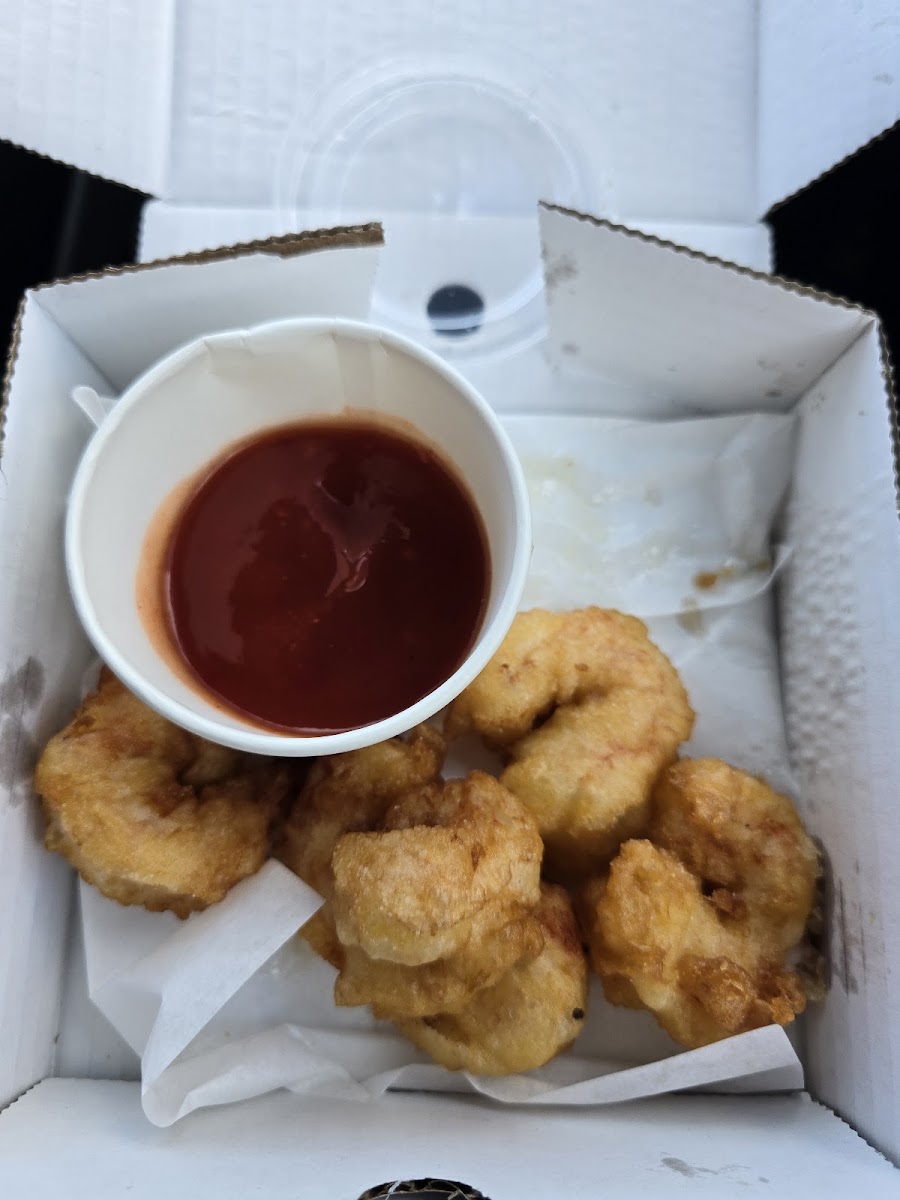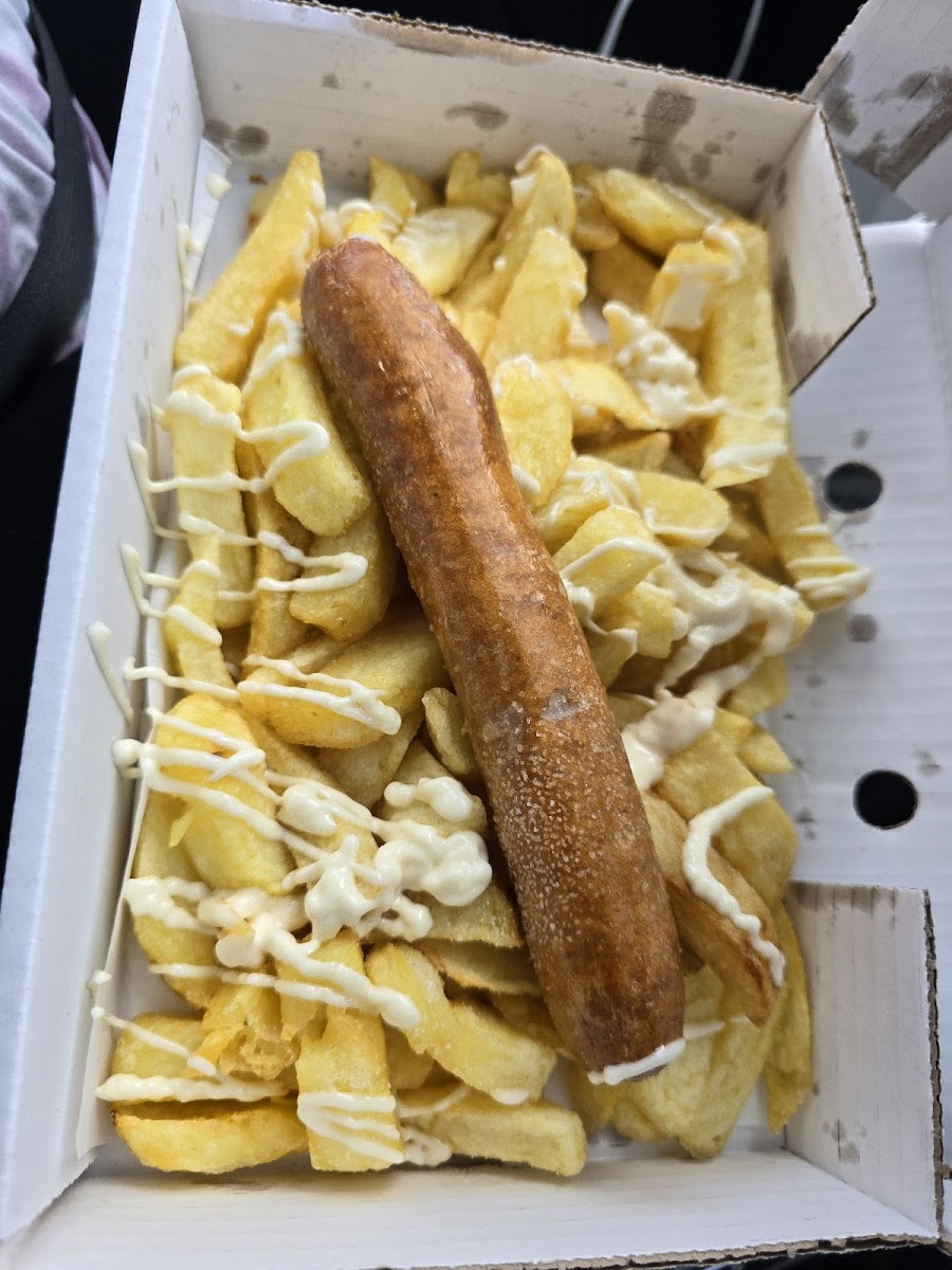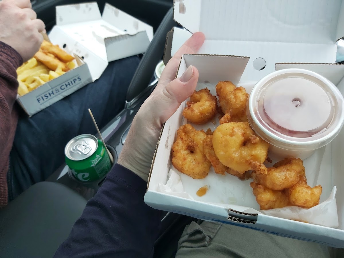 I'd say they are the best chippy in Fleetwood! Lovely fresh Haddock & Prawns cooked to order, lightly battered and with a very generous portion of chips. The prawns came with a nice chilli dip. We also ordered a sausage and chips, which was also enjoyed and tasted how a chippy sausage should. Not overpriced and the service was friendly and quick despite several cars being parked up at the same time. Only gave it lower on the atmosphere rating due to it being just a car park!